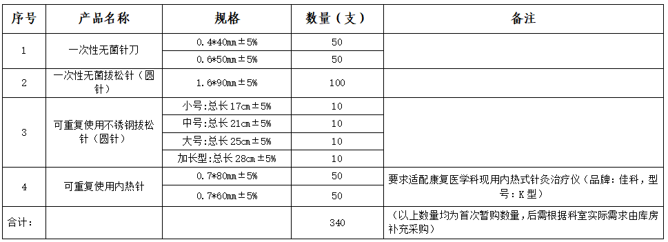 4.为减轻患者负担及开展手术所需,麻醉手术科现申请采购性价比更高的耗材以替换科室现有产品。该项目预算金额为6000元,产品明细及要求如下: